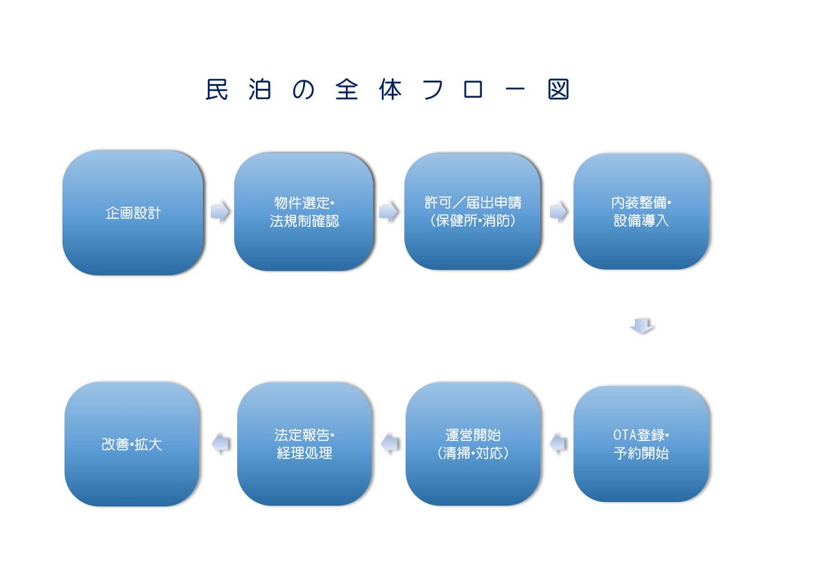 この図は、民泊事業を始める際の全体的な流れを示したものです。