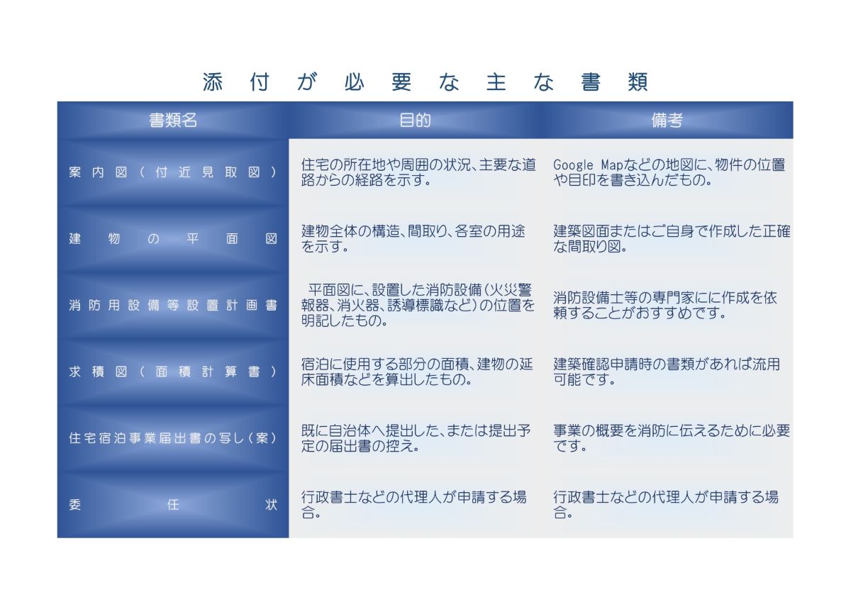 また、求積図や住宅宿泊事業届出書の写しなどは、