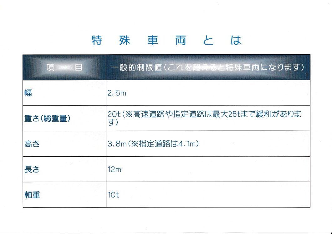 特殊車両は大型かどうかではなく、「道路法の制限値を超えているかどうか」で判断されます。