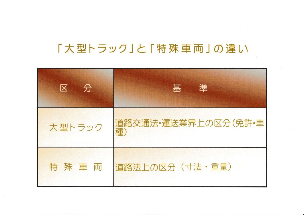 上記の表のように「大型トラック」と「特殊車両」はそもそもが別の概念になります。