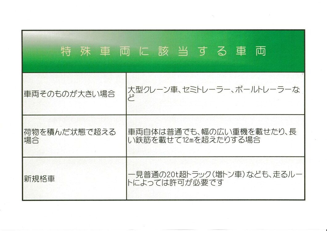特殊車両通行許可が必要になるのはどんな場面でしょうか?